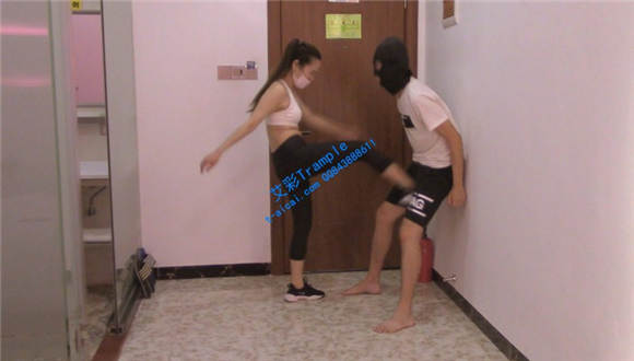 好久不见~可爱的宝宝突然出现~最近宝宝办了健身卡呢,但撸铁实在无聊,倒不如打沙包~各种膝顶裆,膝顶腹,踢裆之后,瘦M已经瘫软在地。但宝宝怎么可能就这样放过他呢?最后,棉袜脚窒息~瘦M幸福地晕过去了