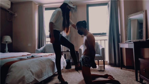 m非常贱 要求用穿了一个半月的袜子进行调教,袜子的痕迹已经很明显了,味道已经不能用臭来形容了。视频开始要求m闻踩过圣水的鞋,期间各种羞辱,磕头等,紧接着让m用嘴把鞋脱掉,闻一个半月的臭袜子,袜子痕迹非常很明显,鞋脱下来的瞬间我自己都快受不了太臭了。命令m大口呼吸把袜子的味道全部吸进肺里。除味过后命令m把袜子脱了换上高跟鞋,高跟鞋调教之前,先把m绑起来以免反抗影响心情,接下来!重头戏开始:高跟鞋踢裆并且命令m不许动而且要说主人我好爽。踢了数不清多少下了 脚脚到位最终m受不了趴在了地上,这时心里已经很生气了,这点用都没有还要你干什么?接下来高跟鞋踩踏惩罚,可以清晰的看到穿着高跟鞋站在m肚子上能完全把肚子覆盖住,可想而知m多瘦弱,把全身的重量全部集中在一个鞋跟上,让鞋跟狠踩进肚子里,最终m受不了,为了增加奴性,把穿了一个半月的臭袜子赛进m的脸上的口罩里放在鼻子上,然后又开始踩!(为了增加观感高跟鞋狠踩期间把视频调成了黑白色)高跟鞋踩累了之后裸足踩!高跟鞋深喉命令伸长舌头舔高跟鞋脏鞋底!因为m的腹部有肌肉损伤,拍摄完之后m已经趴在地上起不来了!整部片子下来完全没有把m当成一个人看,当成了畜牲,再我不屑的眼神里就能看出来!全程强烈羞辱!