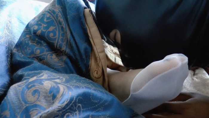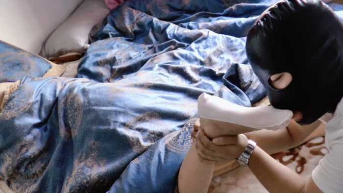 女孩在家睡觉 一个小偷混进来 看见女孩从被窝里伸出来的腿脚 脚上穿着白色船袜 小偷立即忘记了自己的本职工作 迷恋起这双脚 爬过去偷舔女孩的船袜 就这样一直舔啊舔 他突然又想舔裸足 就去脱女孩的袜子 结果这个时候女孩惊醒 小偷立即冲上去 将女孩掐住脖子 女孩奋力挣扎 但是还是没有能够逃脱 小偷把女孩掐死了 他意犹未尽 继续舔船袜 过了许久 他满足了 独自走出了房间 留下了死不瞑目的女孩
