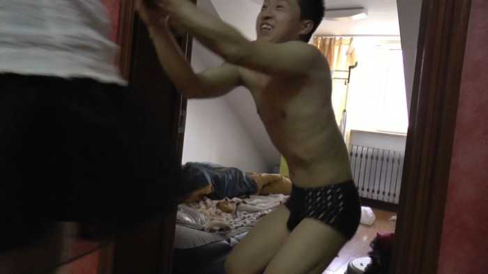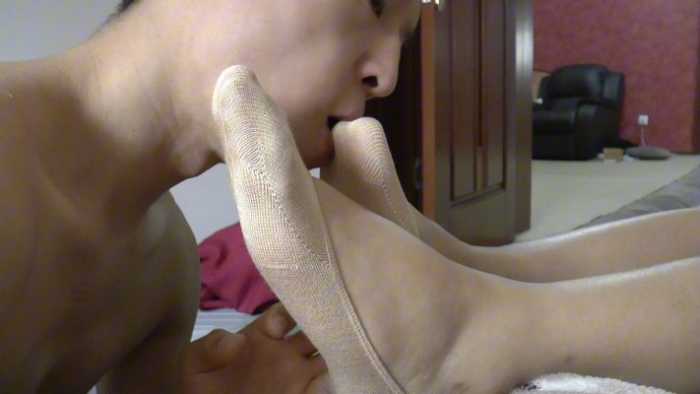 变态埋伏在模特家里,趁她睡觉的时候玩她的丝袜脚,模特有所察觉几次醒来,终于发现了是个变态一直在玩他叫,她大声呼喊,被变态按倒在床上,变态拿着丝袜把模特勒晕过去,然后他打算继续玩,可就在这时模特苏醒过来,赶紧逃跑,变态追过去把模特抓回来按在床上掐脖子,模特被变态掐死,随后变态肆无忌惮的舔她脚上的船袜,直到自己满足为止。