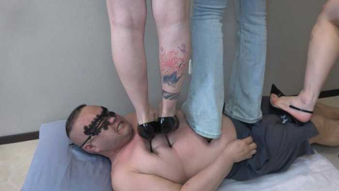 三主高跟踩踏贱狗,单踩,双踩,每脚都深深扎进肚子里看不到鞋跟,贱狗十分痛苦迎来的确是三主的嘲笑,身上被踩的伤痕累累太惨了。