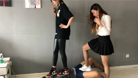 内容:本片由超暴力女神霏霏与长腿女孩乐乐倾情献映,剧情讲述的是霏霏抓获一名偷内衣的变态,之后打电话给闺蜜乐乐叫其一起来参与惩罚该变态的过程。值得一提的是:本片算是拍过的片子中,数一数二的暴力击打作品了,一度怀疑霏霏女主太过入戏,,不论是言语训斥还是踢裆动作,都特别特别的狠,一双黑网袜+小白运动鞋形成视觉反差,由于踢的过狠过快导致截图时候很虚化不太好截取,最后踢废色狼以后,霏霏女主还不解气,硬是要来一个单独的网袜脚深喉才过瘾。男M在拍完本片之后,休息了好久好久。。。。