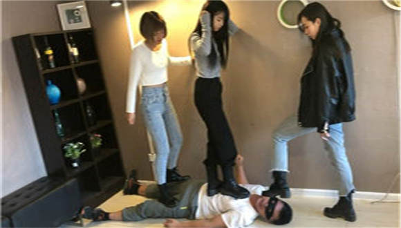 内容:三名美少女对贸然侵入她们更衣室的变态老色狼进行惩治,三人每人都身手不凡,脚法凌厉。最终老色狼被她们联合踢废掉活活踩死。