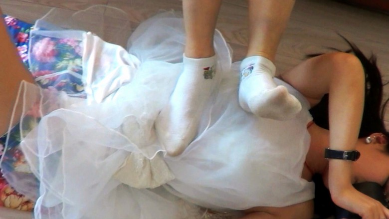两个花痴女争夺男友的故事 往往这种斗争是非常灿烈的 校园暴力大多出于此原因。 在小贝昏迷后 黑冰把她弄到沙发前脚底下 弄醒了逼她舔鞋底然后脱了靴子闻她发黑的臭袜子小贝自然是抗拒的 但是毫无力气 被强迫闻袜子这个时候黑冰就是跟男友视频 说她怎么折磨这个贱人 还给男友现场直播 面对小贝的反抗 黑冰脱了又脏又臭的袜子塞进她的嘴里 然后踩住嘴她毫无反抗之力只能眼睁睁的看着黑冰和负心汉甜言蜜语 并且直播黑冰用她的臭脚羞辱自己