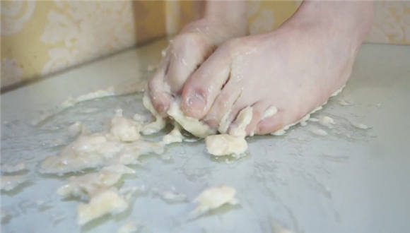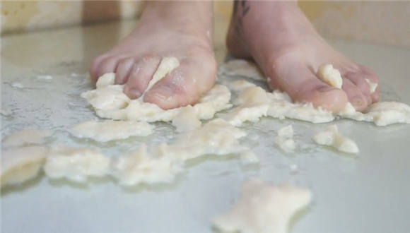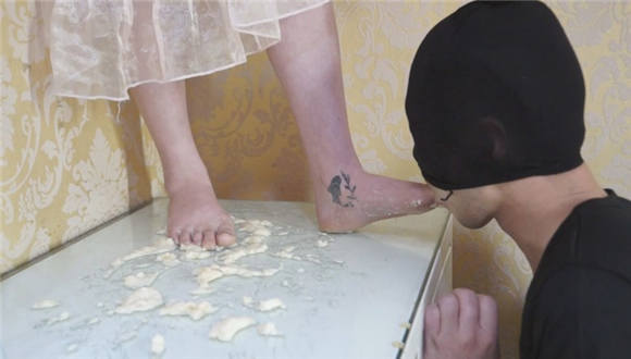 舞蹈演员晓晓的裸足踩水果脚喂食