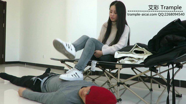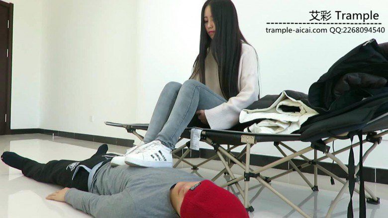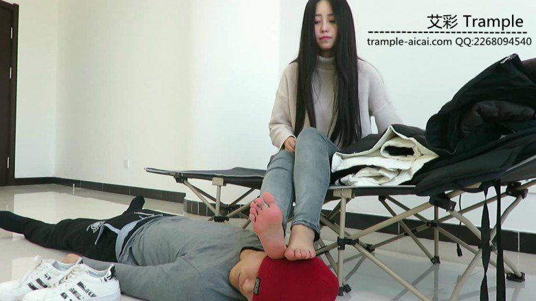 老师坐着在鞋垫身上换鞋,把自己的棉袜踩在鞋垫头上,鞋垫闻到的是老师脚下棉袜的味道,然后老师脚上有汗,脱下棉袜用裸足在贱狗脸上曾来蹭去,让贱狗闻舔,老师裸足超美请欣赏!