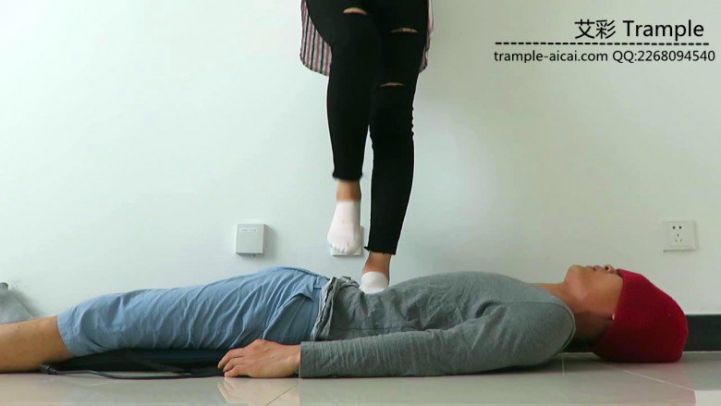 女主穿着船袜在贱狗身上践踏,脱了袜子对着贱狗胸腹猛踩,累了以后把棉袜放在自己美丽的裸足上,让贱狗闻舔!非常诱人!