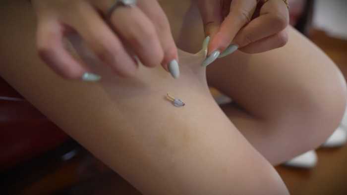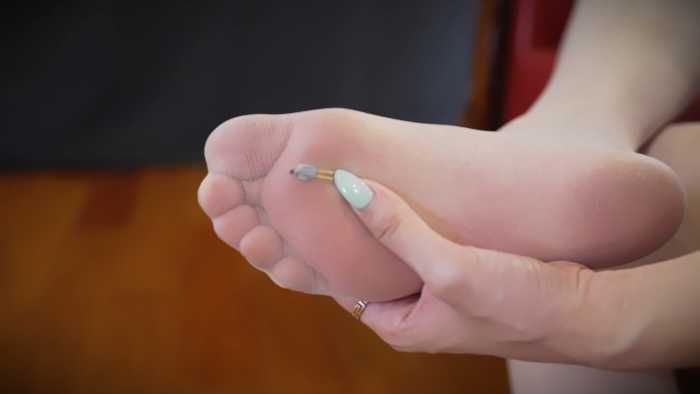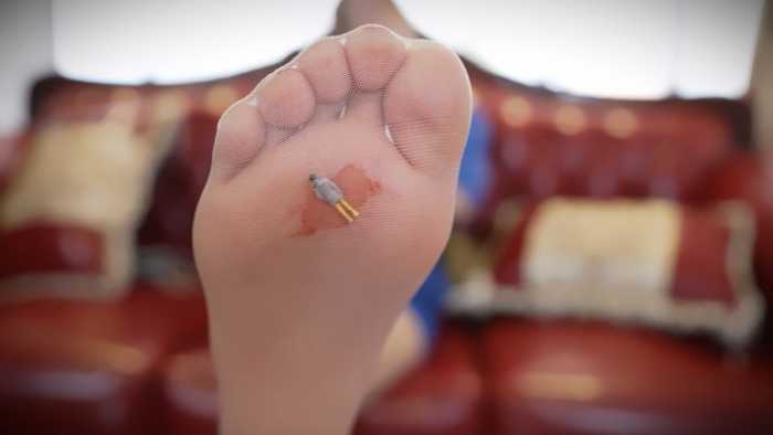 然后小人被影姬塞进了丝袜的最里面,玉足穿进丝袜,再穿进靴子里。