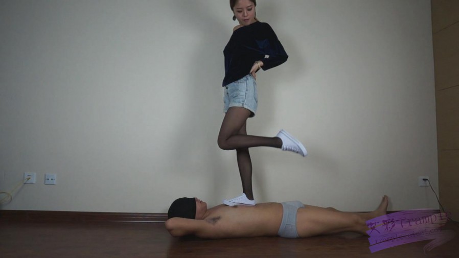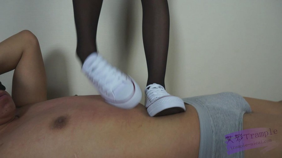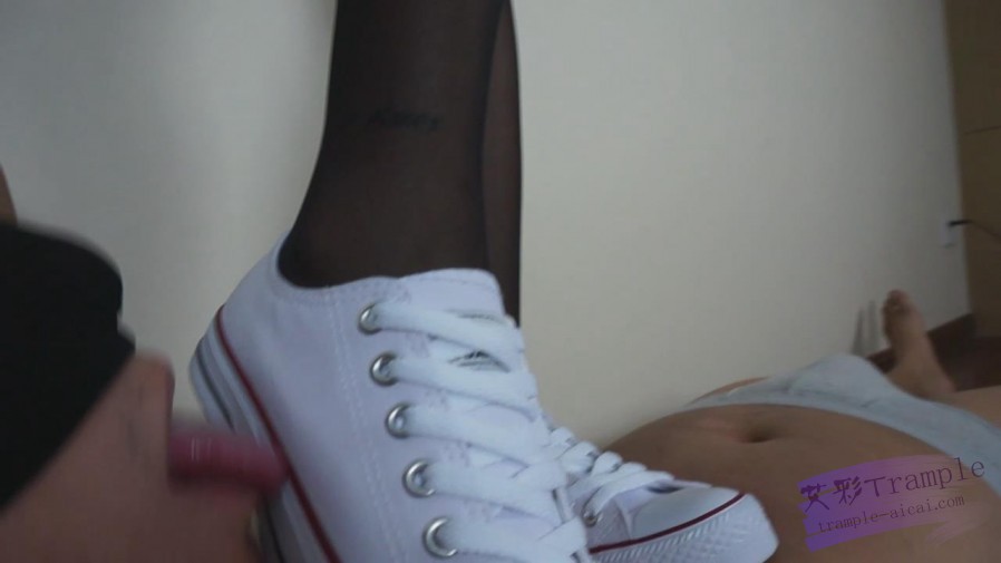 美女黑丝帆布鞋踩踏+舔裸足
