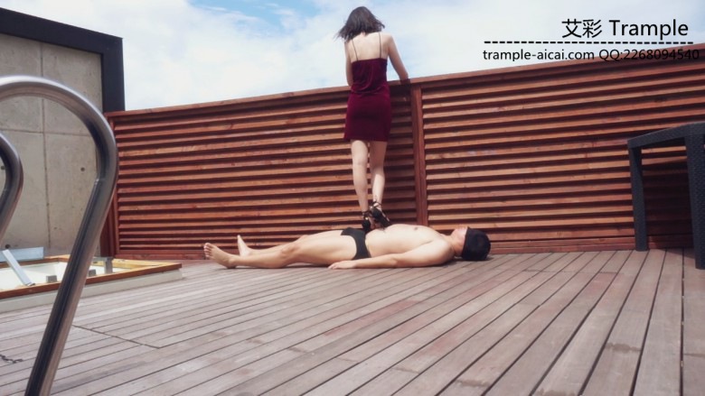 踩着脚垫看风景,最后玩的比较狠,全体重完全用鞋跟踩脚垫,把鞋跟完全踩进身体里,双脚踩,单脚踩都有,毯子被踩的一直呻吟,
