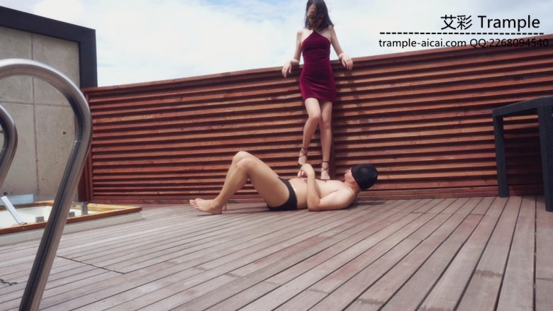 之后全程高跟鞋践踏,全体重高跟鞋双脚踩脸踩头,同时踩头踩脖子,在肚子胸口踏步践踏,高跟鞋全体重跳踩,踢踩下体,踩乳头,