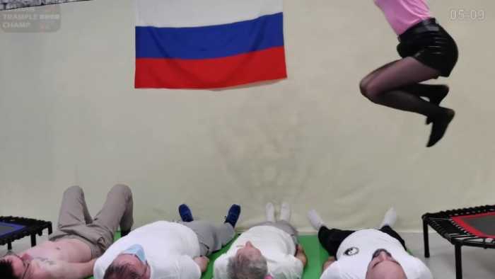 莫斯科女神团的又一力作!近2小时的官方完整版,官网高价入手,皮裙热裤黑丝高跟群踩、跳跺、腿绞乘骑应有尽有,其中一位金发美女貌似与一位被踩的小伙认识并且关系不太好,所以她在跳踩的时候刻意全体重在这个小伙身上猛跺!“咚”的一脚,整个屋子都能听到回音。。。听声音真的挺吓人的,小伙憋气忍着都被一脚踩得噗嗤一声破了功,躺在地上痛苦蜷缩,差点一脚把这小伙踩得连早饭都吐出来,绝对精彩!