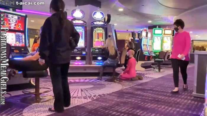 Platinum女神带闺蜜在酒店商场游戏厅闹市虐玩贱狗!路人各种围观拍照!贱狗当众给女神当脚凳、舔鞋底,还被路人用手机拍了下来,太羞辱了。。。