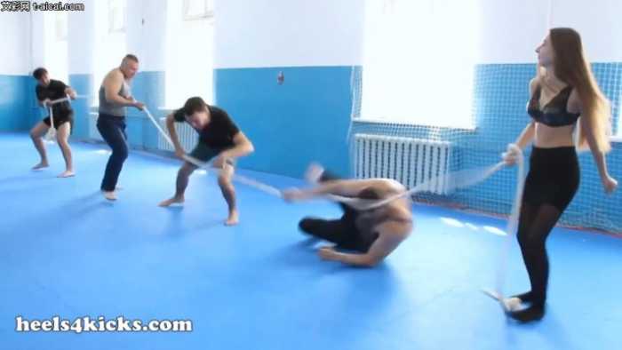 掰手腕、拔河,四个贱男一起上都不是黑丝女的对手,格斗对打更是被黑丝女的黑丝脚踢了个半死!踩在脚下屈辱地向黑丝女求饶,像狗一样在黑丝女脚下爬。。。太丢人了。。。
