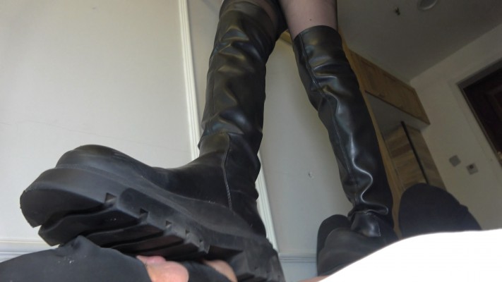 绝美艾琳拥有傲人的身材和甜美的外表,可折磨虐狗确与甜美的外表形成反差。大头长靴鞋底鞋尖十分硬,靴子很重,踢人踩人自带痛苦加成。靴尖暴力踢腹部,踢头,踢脸,高抬腿劈头,老狗头晕眼花只能忍受。艾琳命令老狗把脏鞋底舔干净,稍有不满意便是暴力耳光。高跟鞋凶狠踩乳头,踩一会就踩出血了,靴子暴踩,跳踩,踩脖子窒息,鞋底劈脸正面,暴力剁裆,踩的死去活来,把老狗折磨的只剩下一口气了!