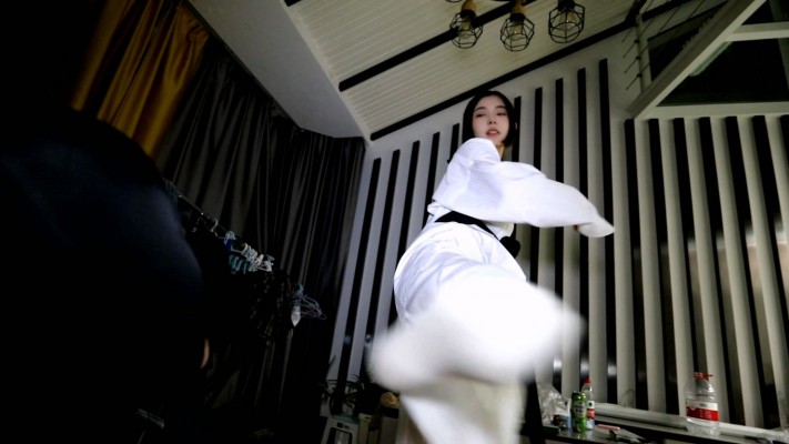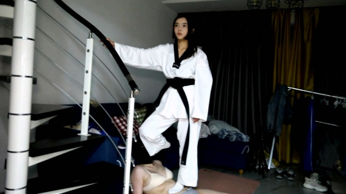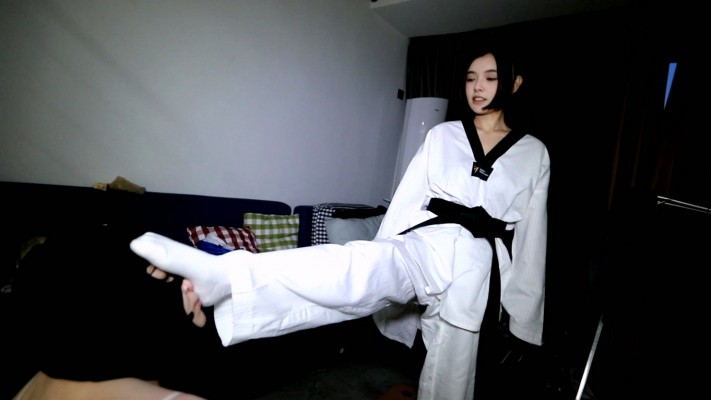 【芊芊】跆拳道女主臭脚白袜爆踢活靶母狗