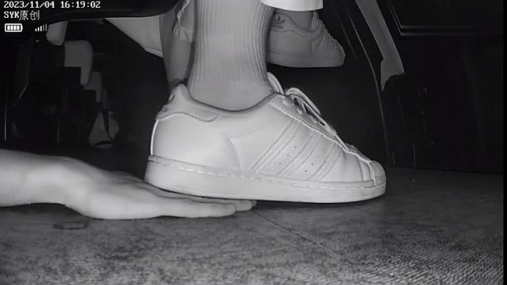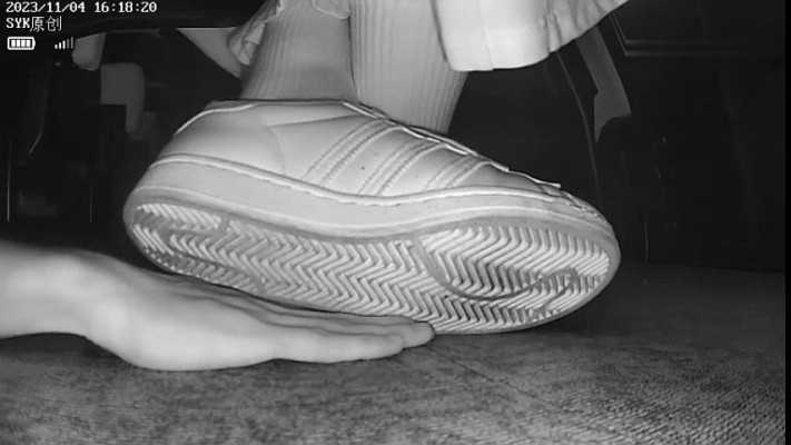 B671 – 无意识长裙阿迪贝壳白鞋翘腿踩全手垫脚 bf42623