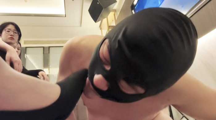 跪拜几位主人 同时对主人的高跟鞋磕头 崇拜 小刚用最贱的姿态 求女王们赏赐他清理鞋底