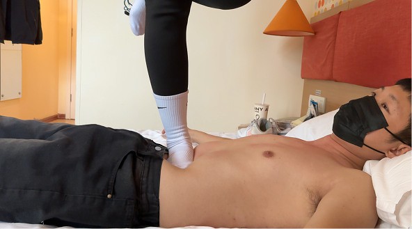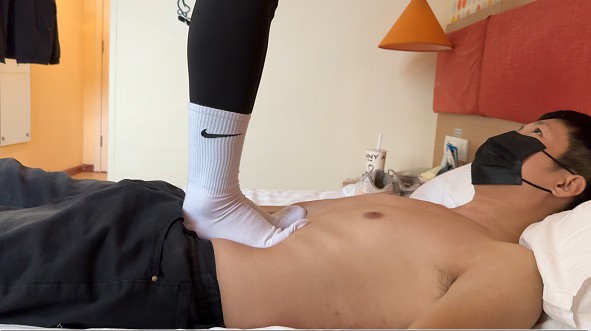 还是躺床上踩舒服,因为不是光脚不会因为脚汗打滑了,女生明显也放开了不少,全体重白袜单脚深陷软腹,在肚子上换好运动鞋各种全力大跳(两双运动鞋换着跳),也是拍这部视频才知道她之前是体育生,自认为已经非常抗跳了,这次也被她跳服了。感觉胆子很大,接受能力也非常强,而且感觉她很喜欢在肚子上跳,因为每次让她随便踩的时候她都会先问一句,可不可以跳,哈哈。要被她当蹦床了,感觉好幸福。后续会开发全体重踩脸,全体重踩脖子,踢肚子之类。