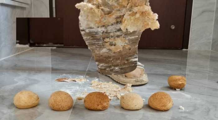 穿了整个夏天超脏的凉鞋,被狗狗定制,用来踩了一盒泡芙。奶油弄得到处都是,脏鞋底上也涂满了奶油,等着狗狗过来舔~