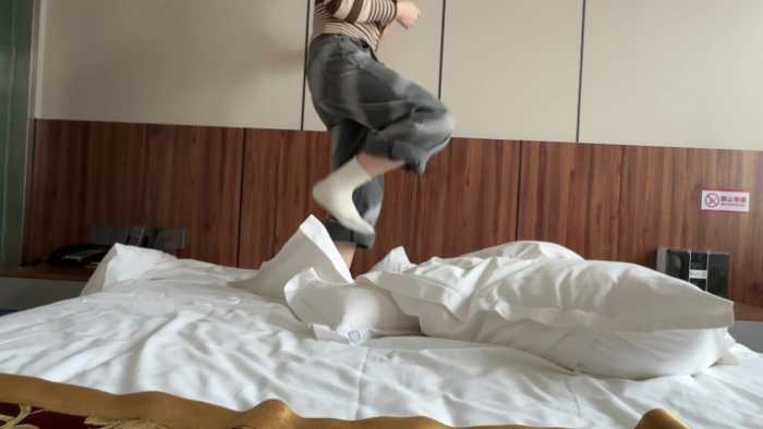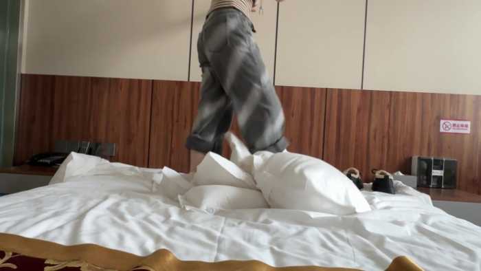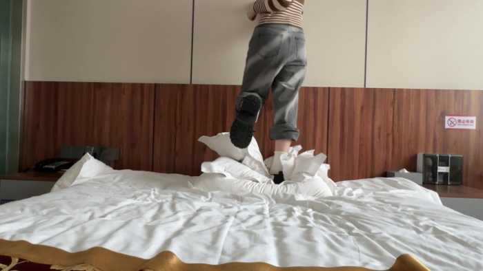 女主用冬季休闲鞋和白棉袜狠狠剁踩枕头,力度非常大,东北姑娘的虎劲这个时候就体现出来了