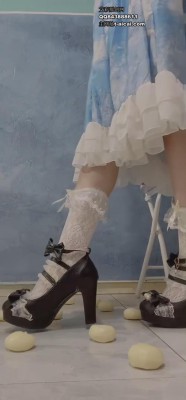 青春洛丽塔高跟鞋+裸足,25分钟极致搅拌享受!